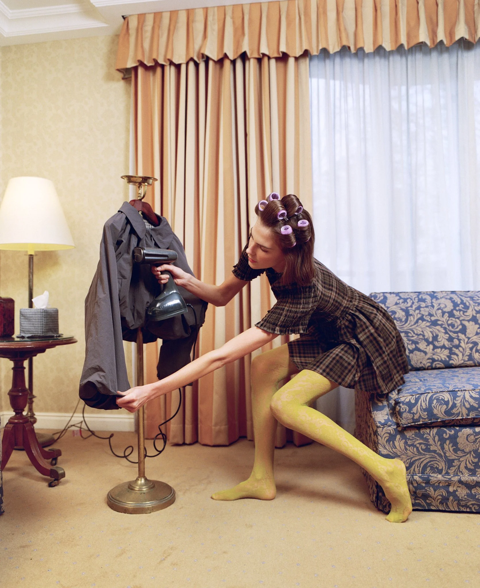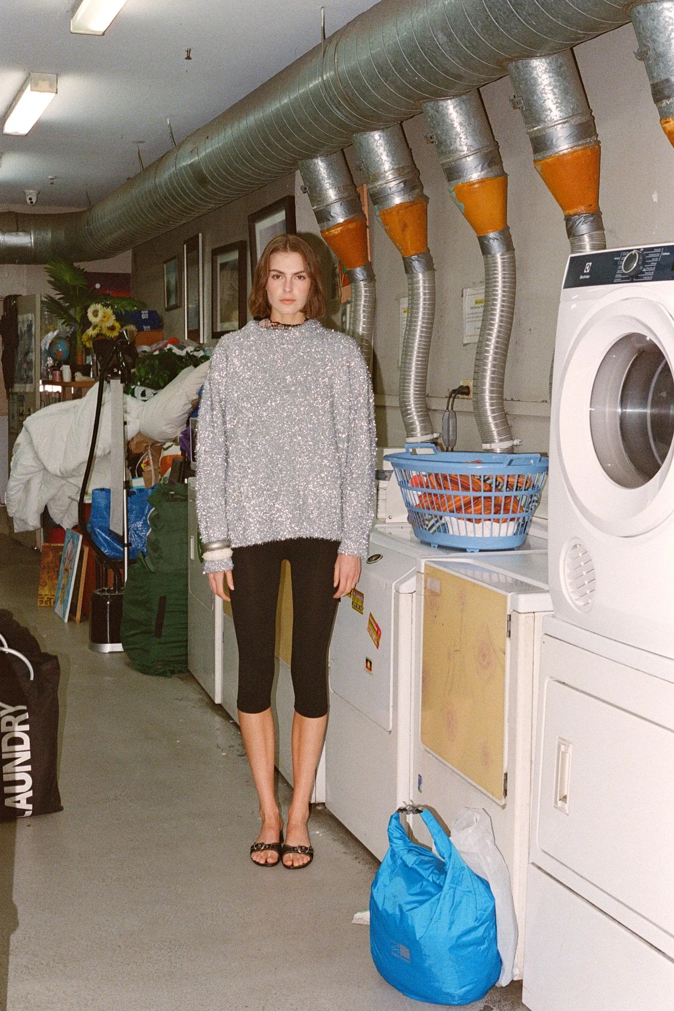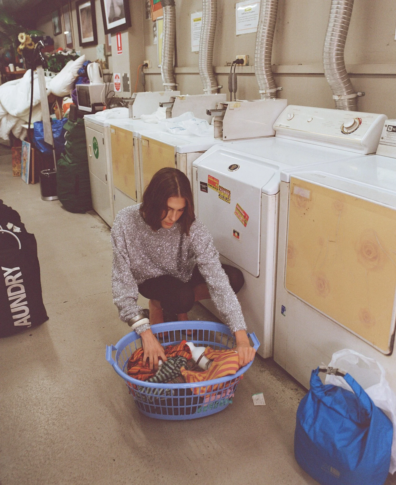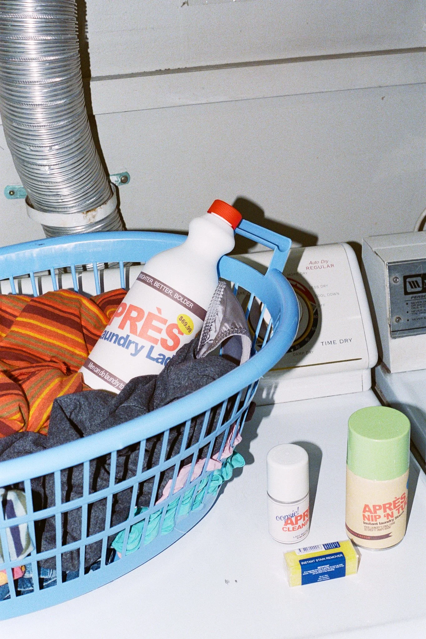 Set in a laundromat, a dry cleaner, or the soft light of a bathroom sink, the world of Après Studio became an ode to care, a series of vignettes that turned the practical into the poetic. Ironing, hand washing, sewing, folding, picking up dry cleaning — every act was reimagined as an intimate gesture of self-care and a love letter to longevity and conscious consumption. Ordinary care, made beautiful. Fabulously overdressed for the laundry, because it really is the occasion.