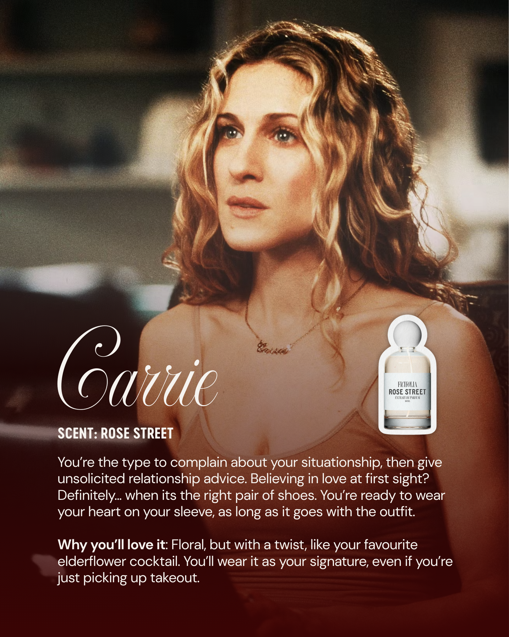 The fragments of femininity that make a fragrance feel like a character in her day.